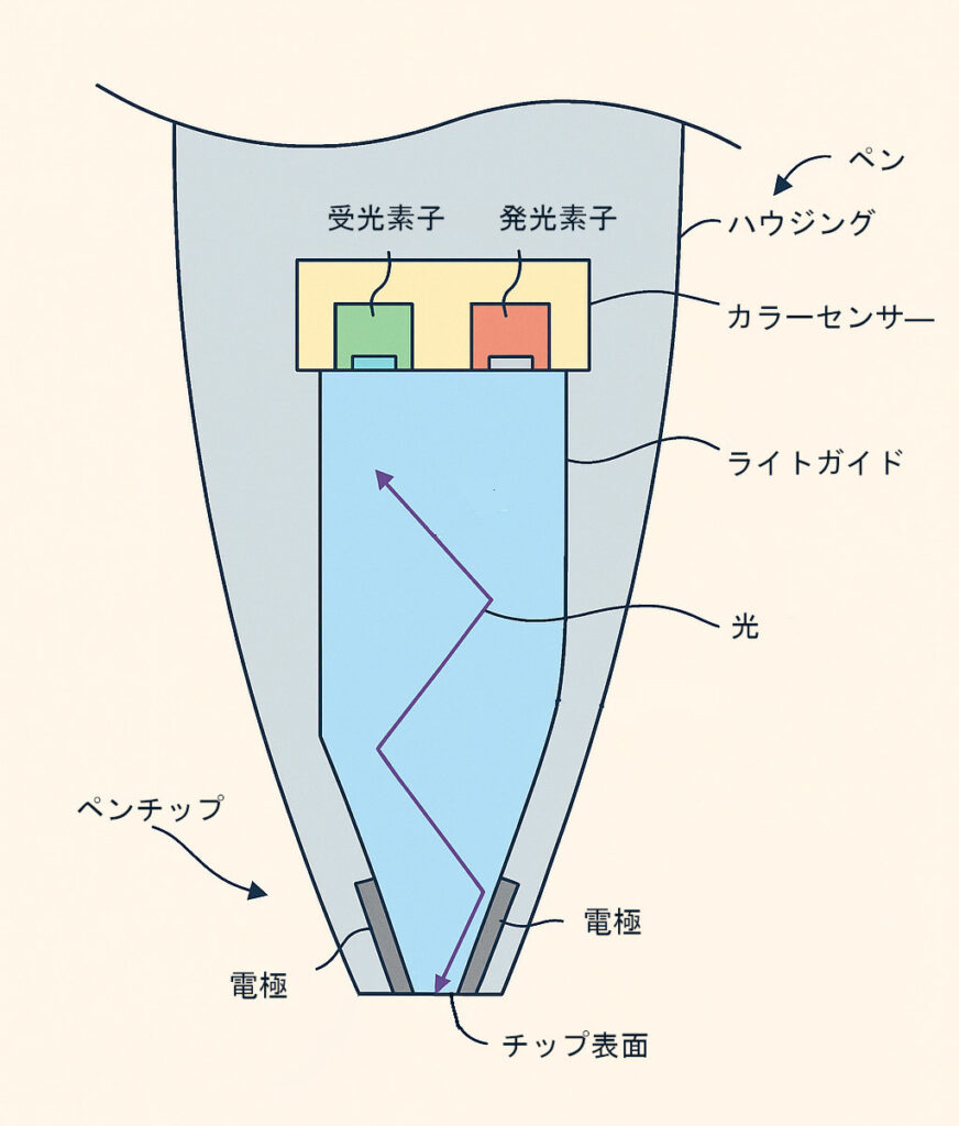 つまり、スタイラスが“小型分光器”として機能するのです。