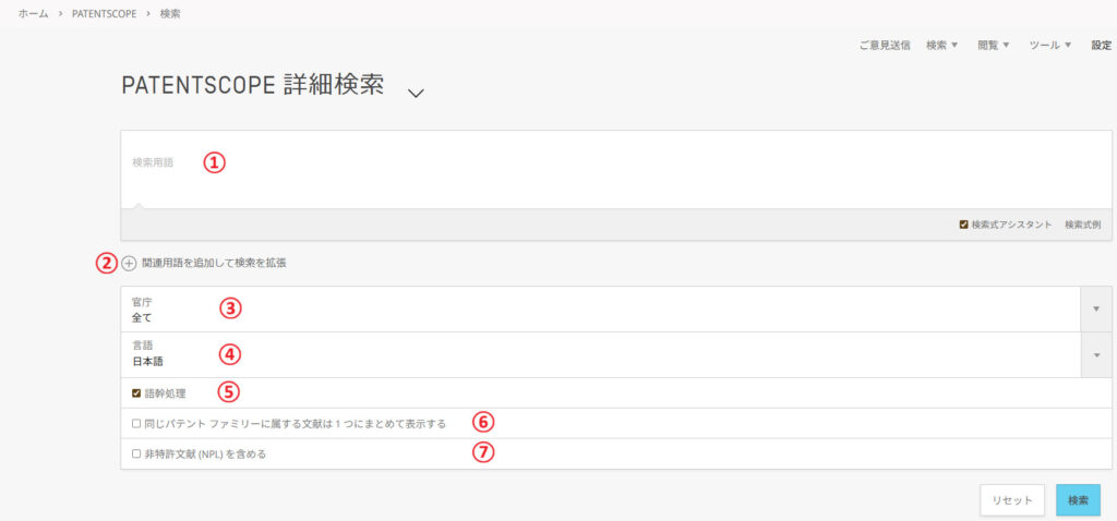 前回はPATENTSCOPEの簡易検索について説明しました。今回は、詳細検索、構造化検索、多言語検索拡張について説明します。