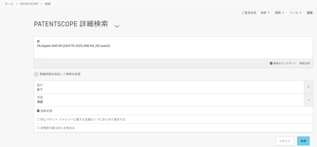 今回は、PATENTSCOPEの詳細検索と構造化検索、多言語検索拡張の使い方について解説しました。
