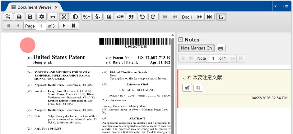 - Document Viewer:特許文献が個別に表示されます。テキスト表示/PDF表示を切り替えての表示、公報PDFのダウンロードなどが行えます。