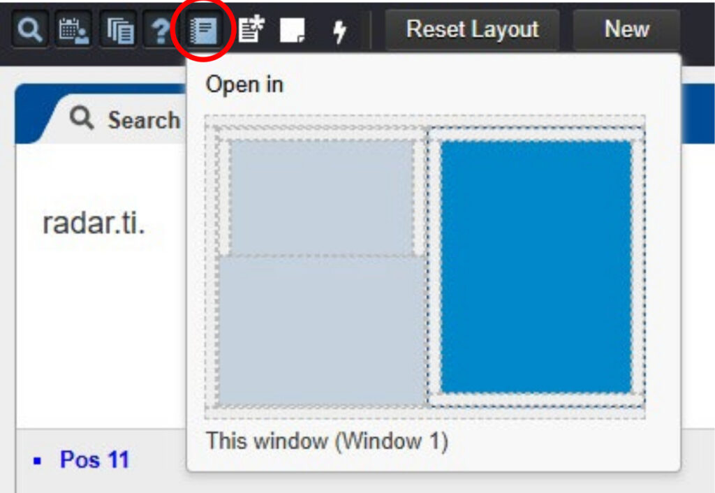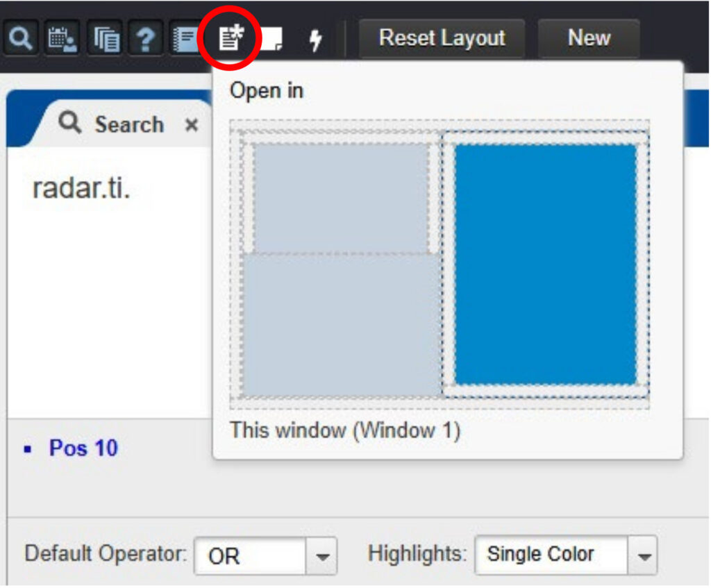 新しいDocument Viewer を表示するには、上部にある 文献 ボタン(下図赤い丸)をクリックし、表示するウィンドウ(下図の例ではDocument Viewerパネル)を指定すると、Document Viewerパネルに 新しいDocument Viewer が追加されます。