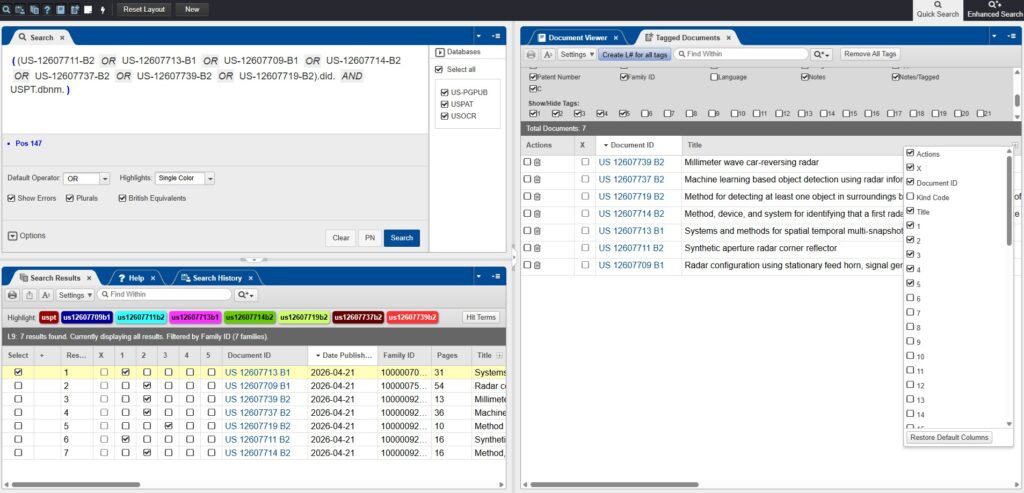 Patent Public Search では検索結果を表示するための様々な機能が用意されています。今回は、3つのパネル、「Search Results」「Document Viewer」「Tagged Documents」の機能について解説します。
